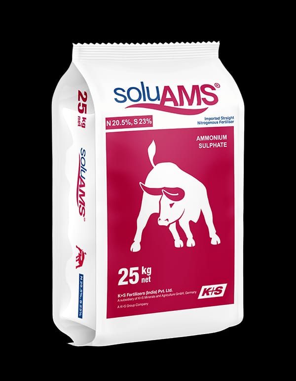Ammonium sulphate supplying nitrogen and sulphur for sustained vegetative growth and nutrient efficiency.